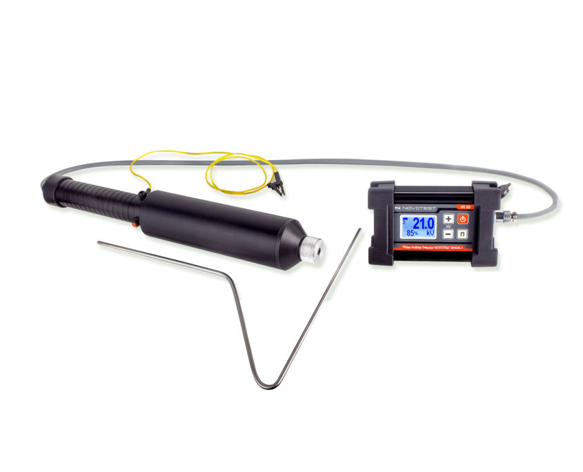Pulse Holiday Detector NOVOTEST SPARK-1 designed to detect pits, flaws, and holes in different non-metallic insulation coatings (such as polymers, epoxy, bitumen, etc.) and is mostly used for oil and gas metal pipelines and other objects. The device can be used while the pipeline construction, operation or service. Tested coating thickness is up to 12 mm. Such tests are needed to evaluate the oil and gas pipelines corrosion protection reliability. The Device complies with ASTM G62-07, NACE RP0274-2004, NACE RP0490-2007, NACE SP0188-2006, ASTM D4787-08, ANSI/AWWA C214-07, ANSI/AWWA C213-07, ISO 2746:1998 & AS3894.1-2002.
