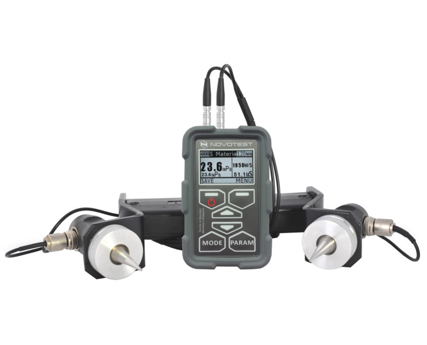 The pulse velocity tester IPSM-U+T+D allows to measure the strength and homogeneity of the concrete, bricks and other materials under the composition and surface sounding in products and designs for construction projects, inspection of buildings and structures, according to ASTM C597-16 (Standard Test Method for Pulse Velocity Through Concrete). Has the determining of the depth of cracks by the surface sounding probe function and also flaw detection mode (A-scan).
