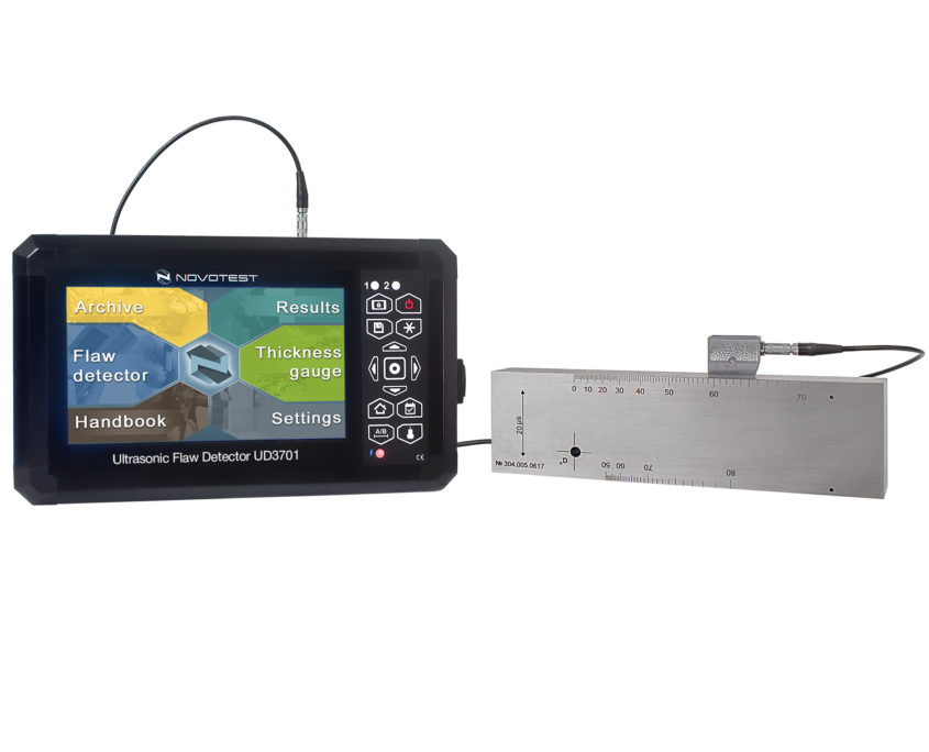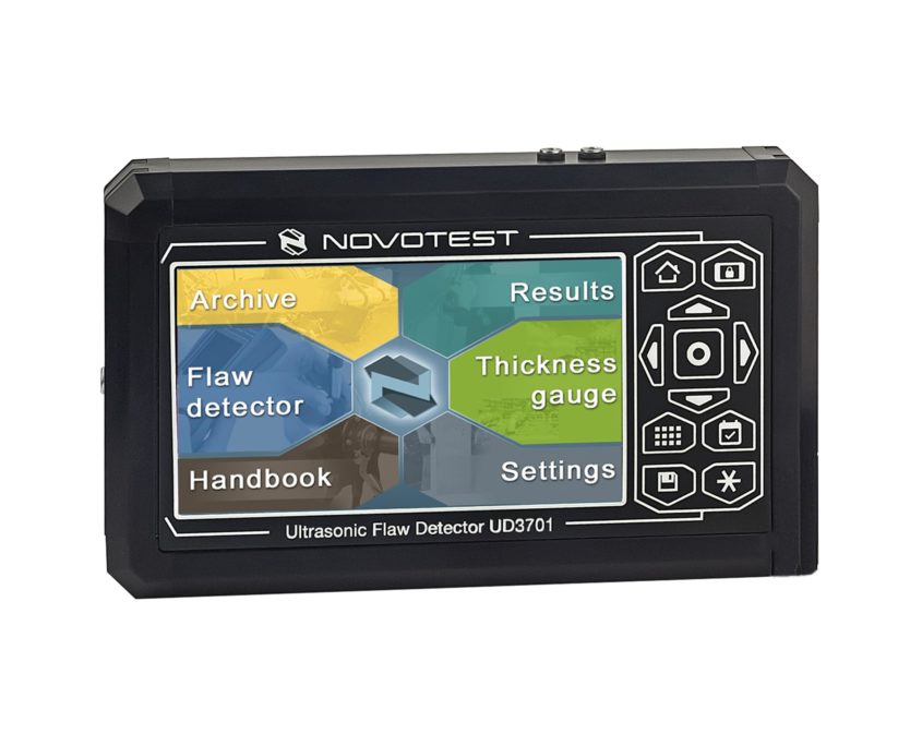 Ultrasonic Flaw Detector NOVOTEST UD3701 is designed to detect defects, such as discontinuity and heterogeneity in objects, weld joints quality, to measure the depth and position of flaws, thickness measurements, measurements of velocity and attenuation of ultrasonic waves for different materials.